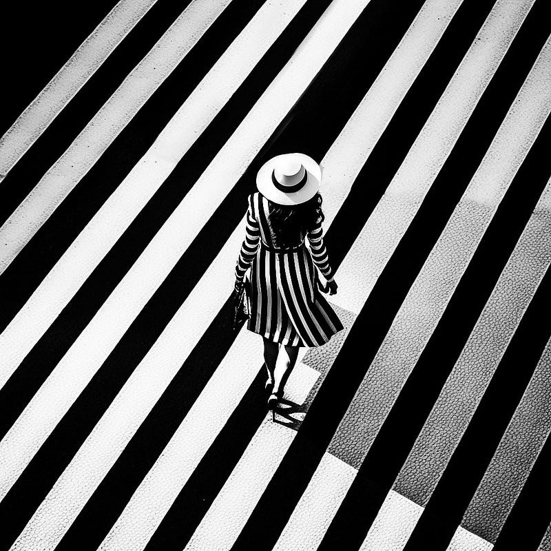 Look at the heels that woman is wearing. Of course she got to the pedestrian crossing by motorized transport!