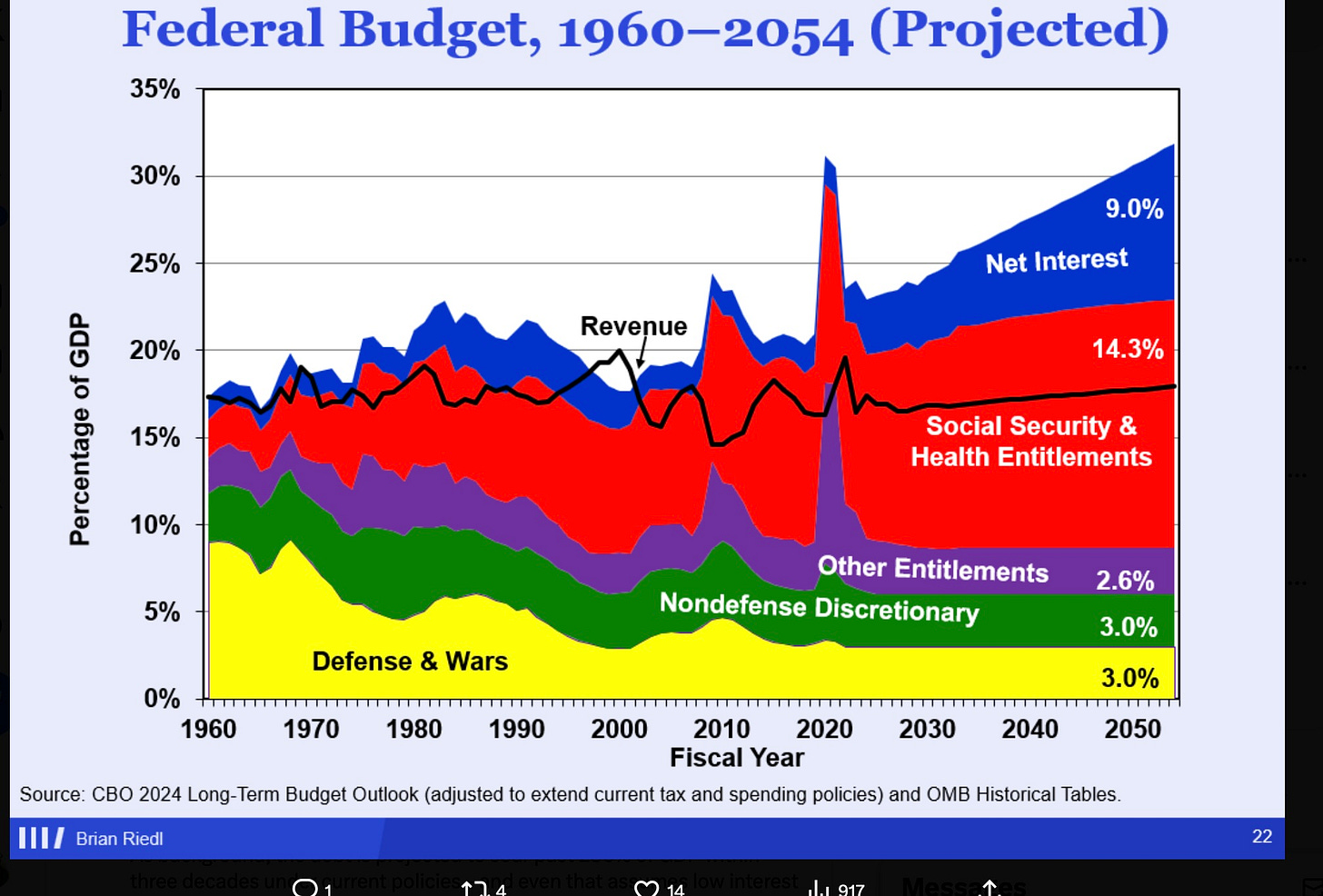It comes from Manhattan Institute economist Brian Riedl’s TwiX account. He further remarks on TwiX regarding the massive budget problem: