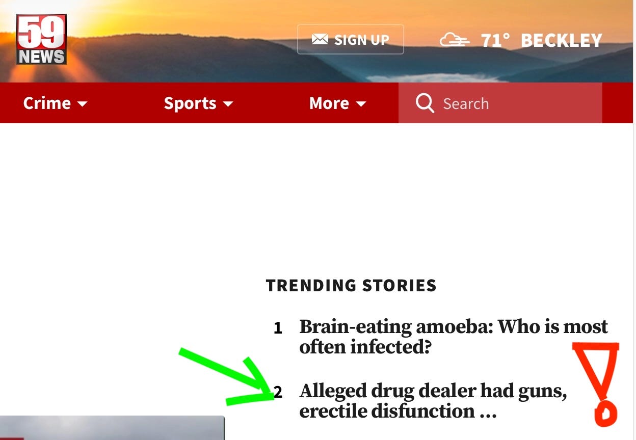 There’s always a set of links in the upper-right corner of the page to articles and reports from within their station and network. This particular configuration took even me by surprise: