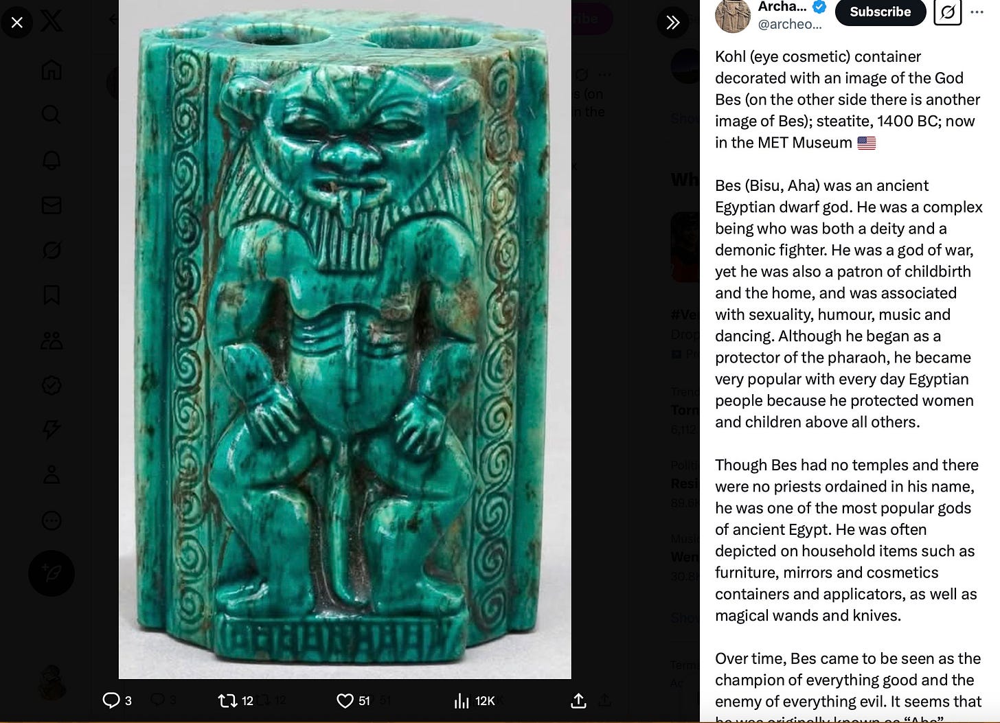 My take on social media is that they almost seem designed to exploit the worst natural tendencies within our minds for obsessive, self-destructive behaviors. They do so by feeding us with a steady stream of dopamine hits. Nevertheless, there are still plenty of social media users who post more pleasant, less negative content on a regular basis, and who by-and-large show no particular tendency to promoting rage. One such user posts mainly about archeological history. The user’s main microblogging page, named “Archaeo-Histories”, is at this link to Twitter/X.
