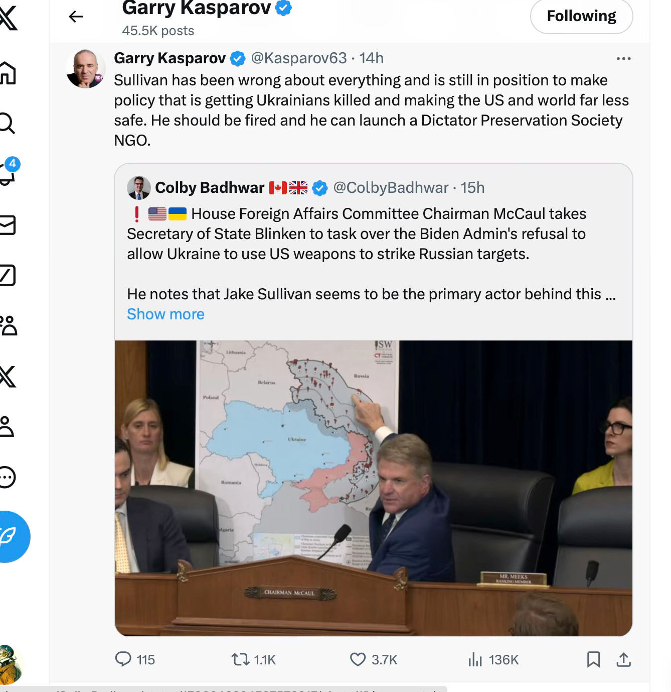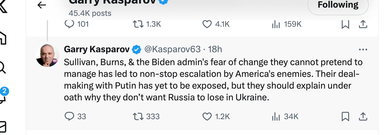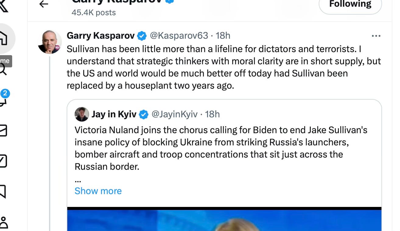 Good morning. Strong words from Garry Kasparov.